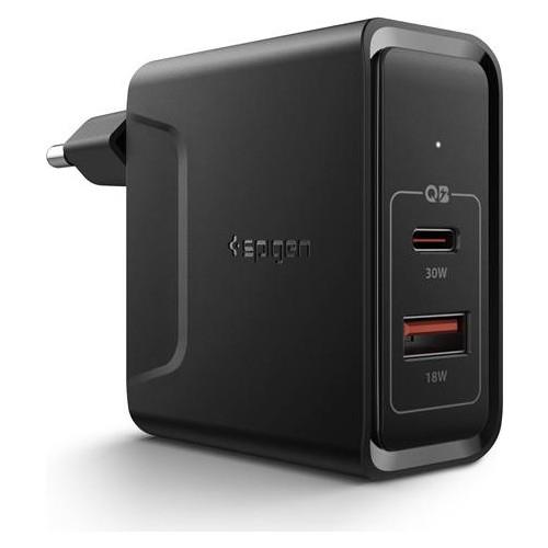 Spigen Steadiboost 48W Hızlı Şarj Cihazı (USB-C PD 3.0 30W + Quick Charge 3.0 18W) iPhone / Android / Macbook Şarj Adaptörü Black F211 - 000AD24973